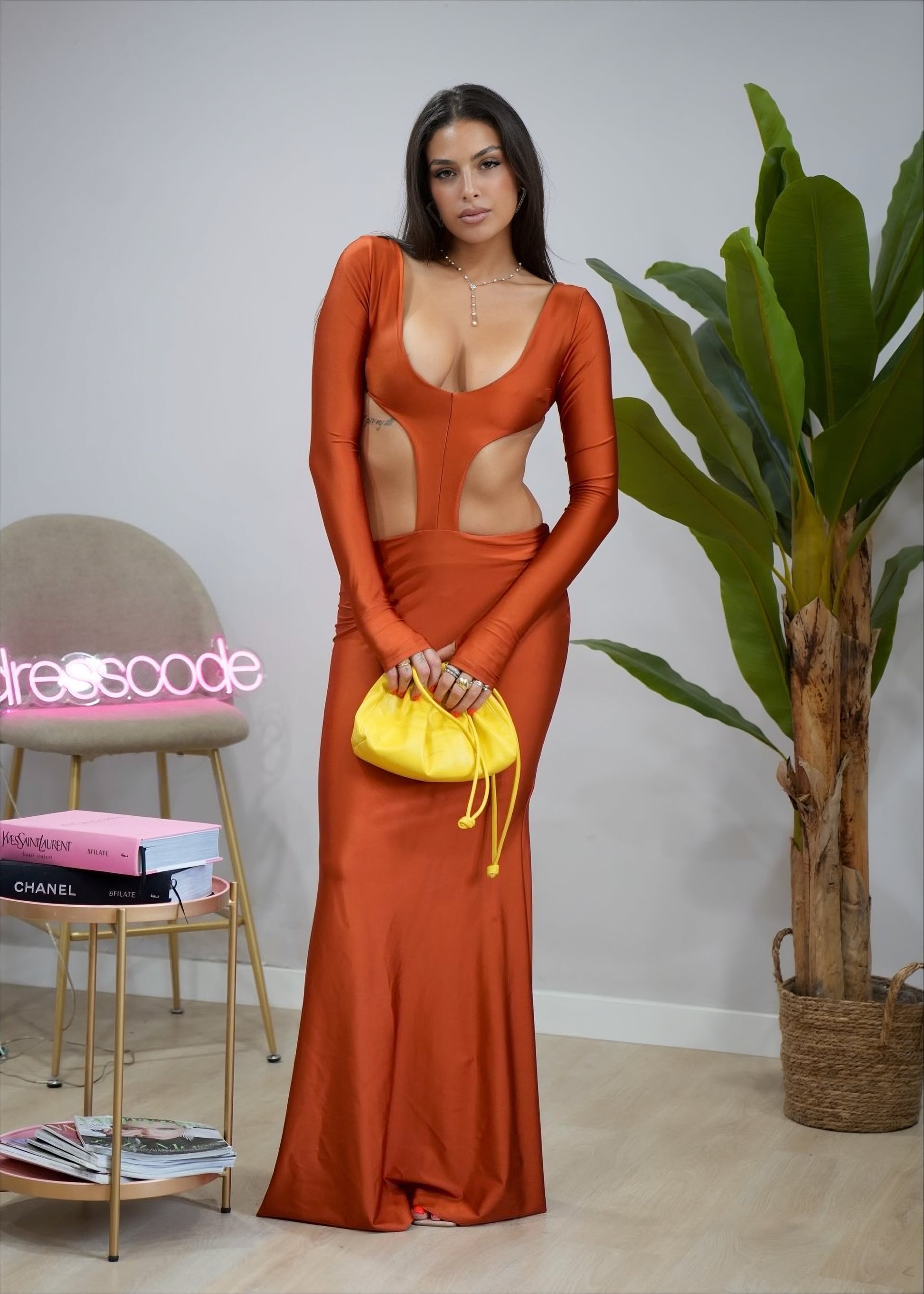Abito a maniche lunghe in lycra lucida elasticizzata.