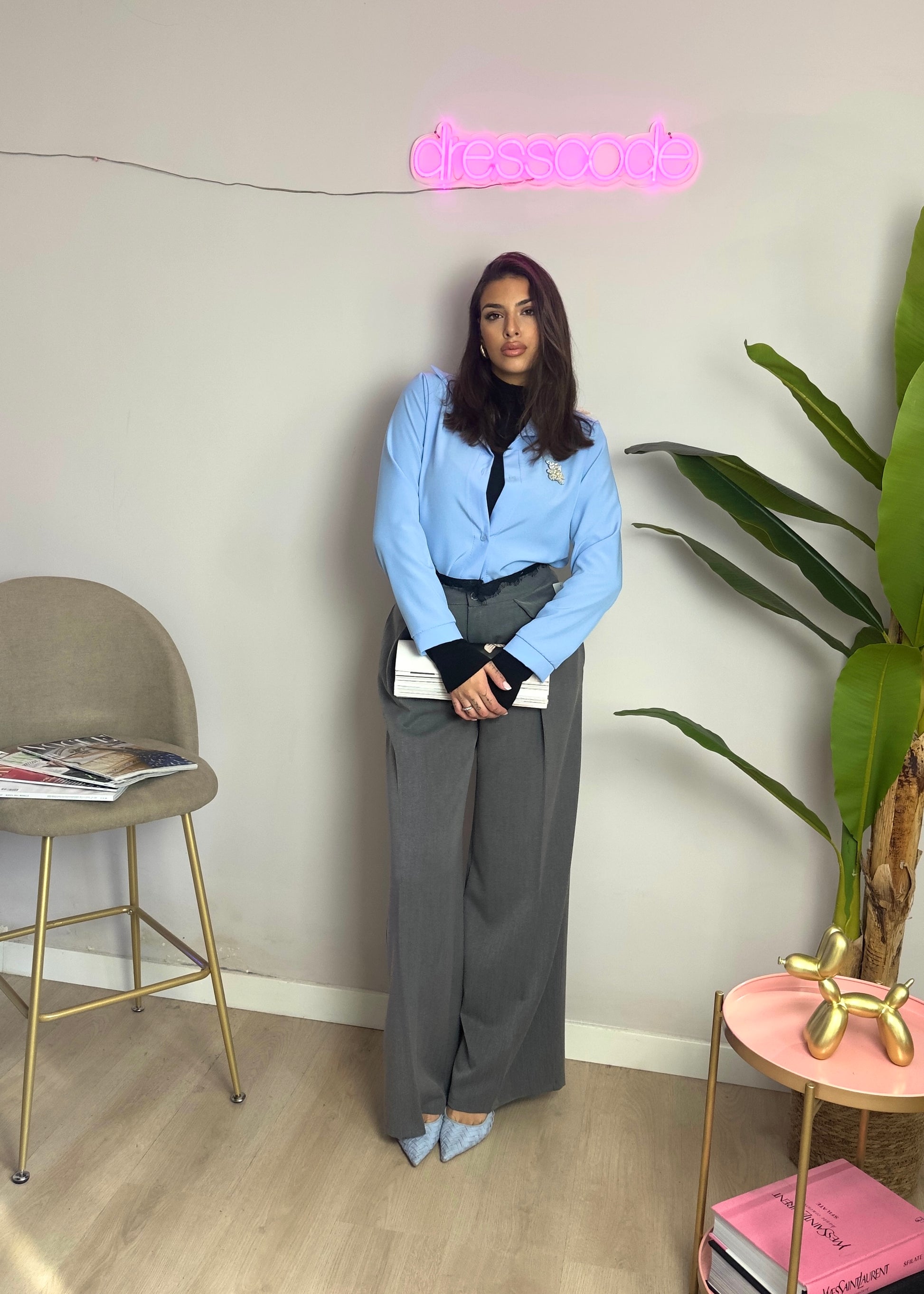 La particolarità della camicia è l'applicazione di un mini orso in brillantini sul petto.