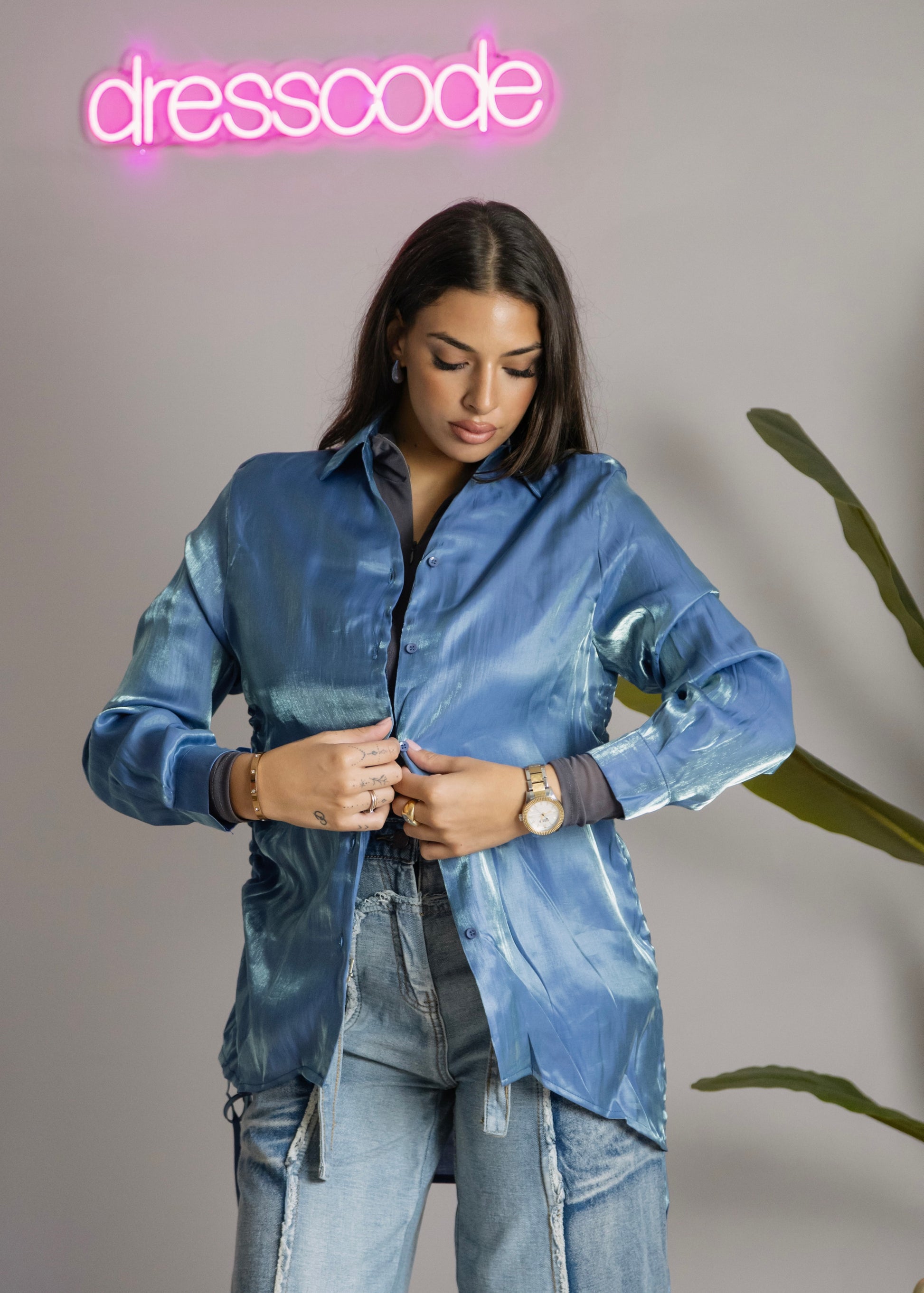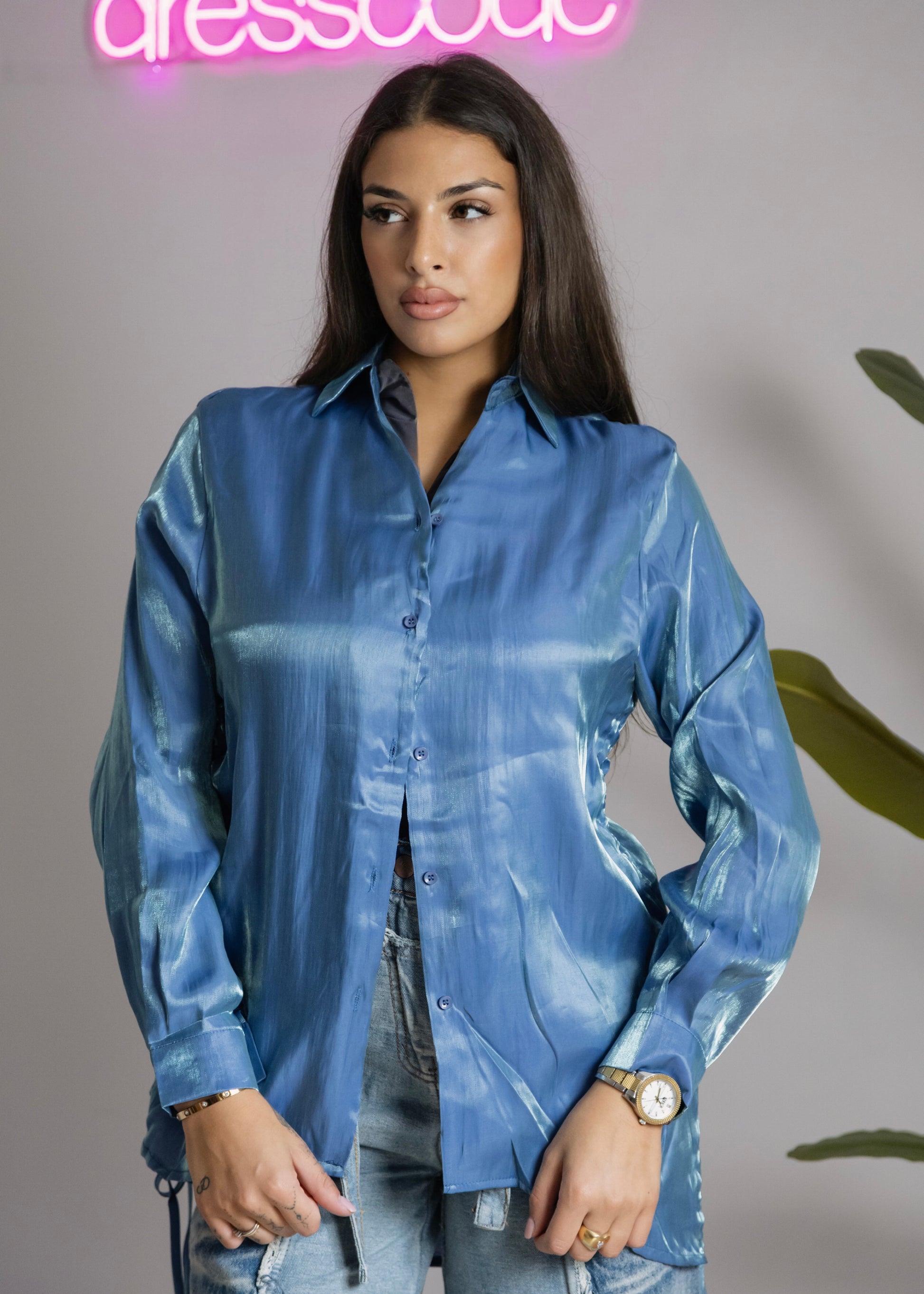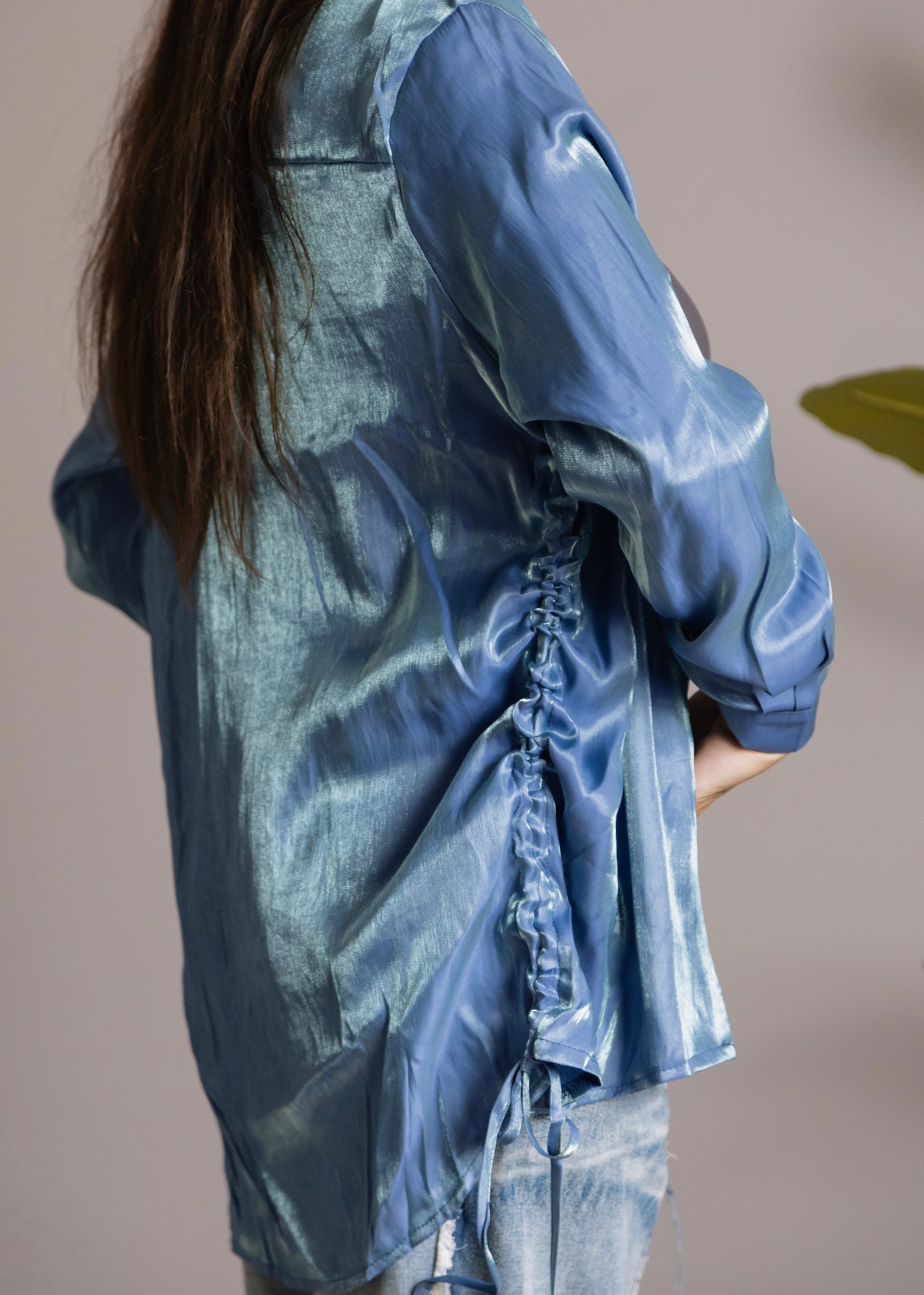 la camicia presenta una coulisse regolabile su entrambi i lati, donando un motivo arricciato.
