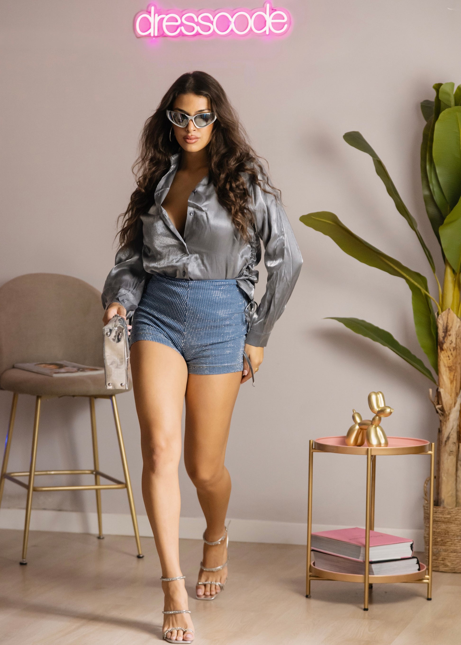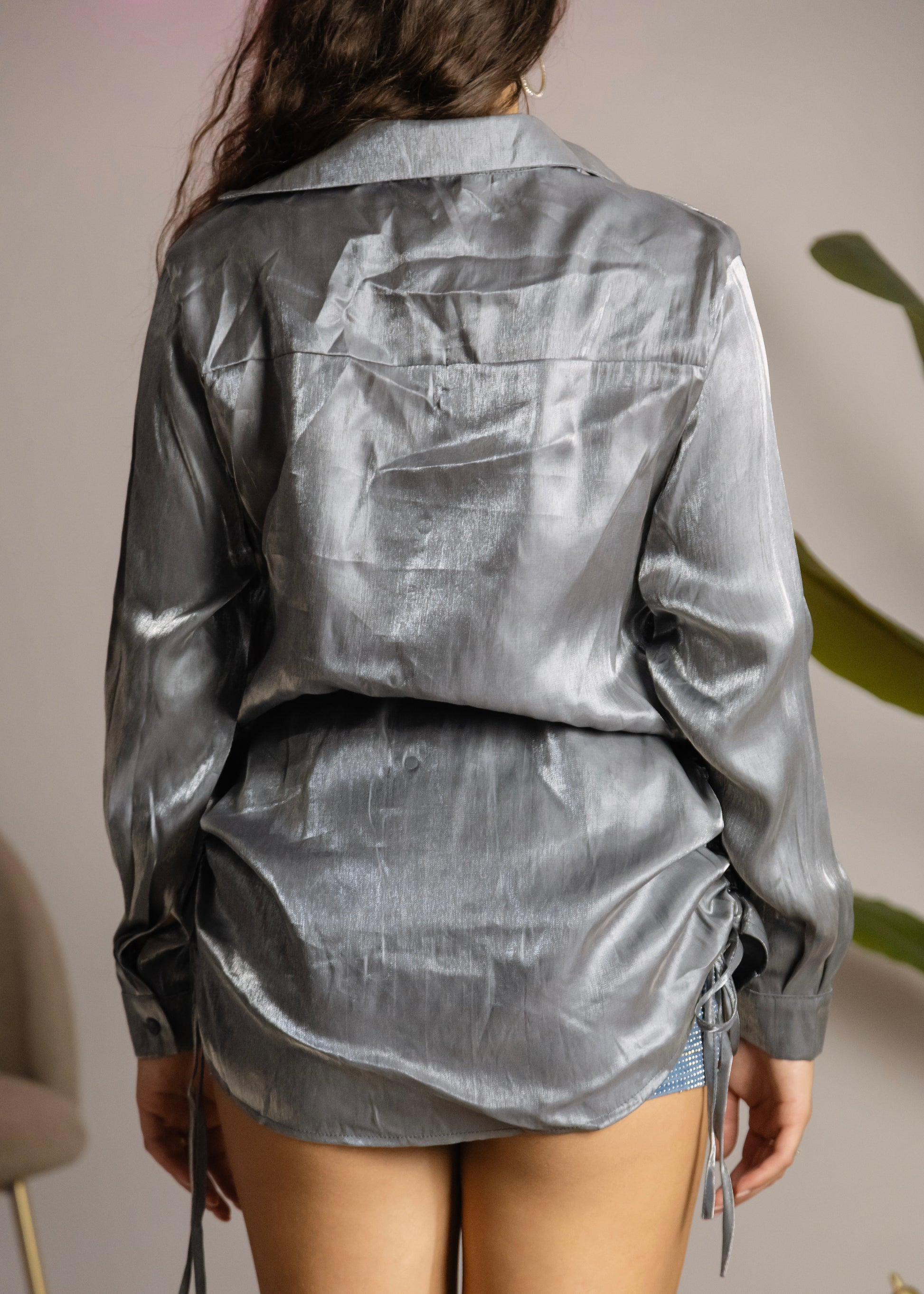 la camicia presenta una coulisse regolabile su entrambi i lati, donando un motivo arricciato.
