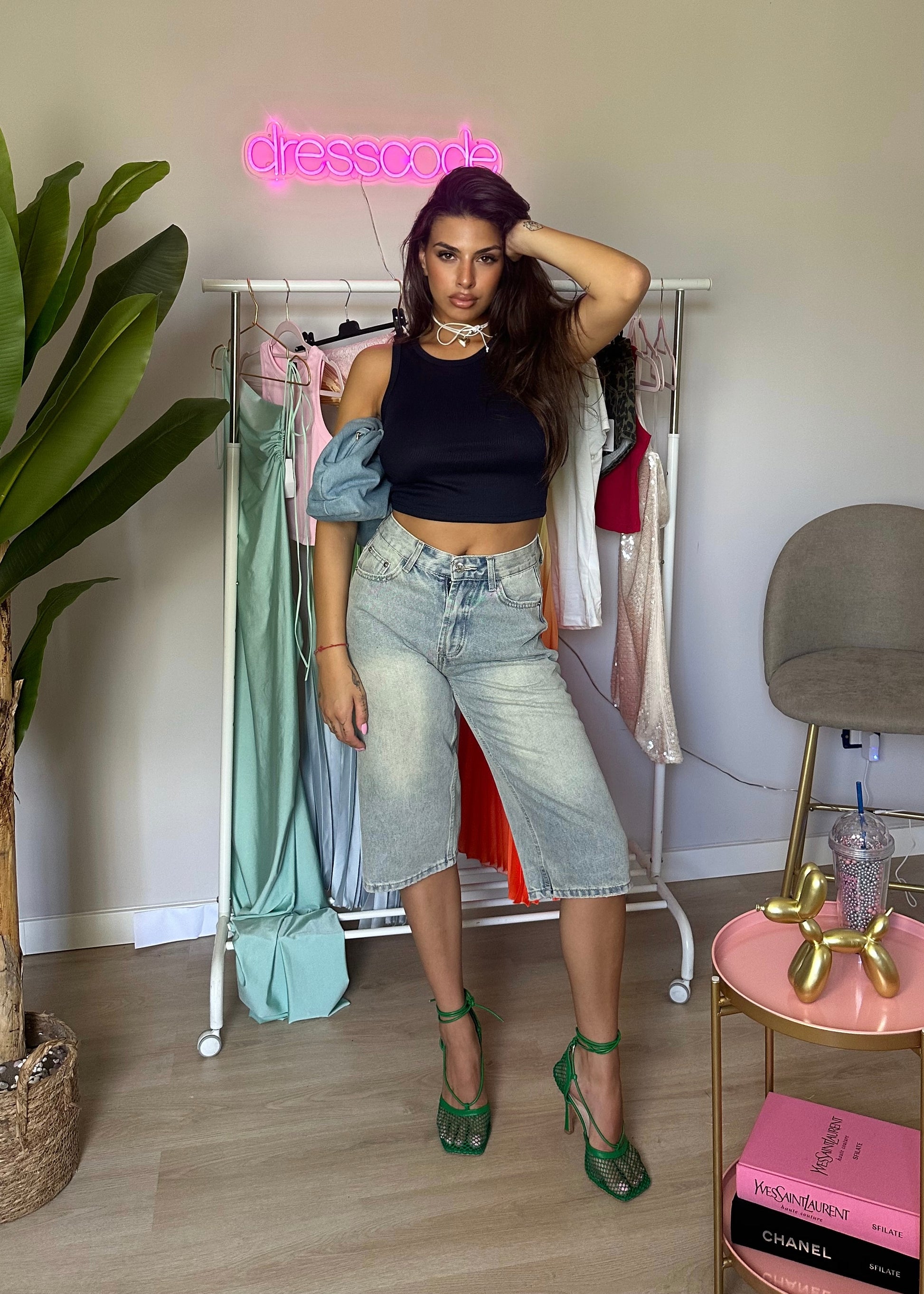 Canotta crop a costine girocollo.