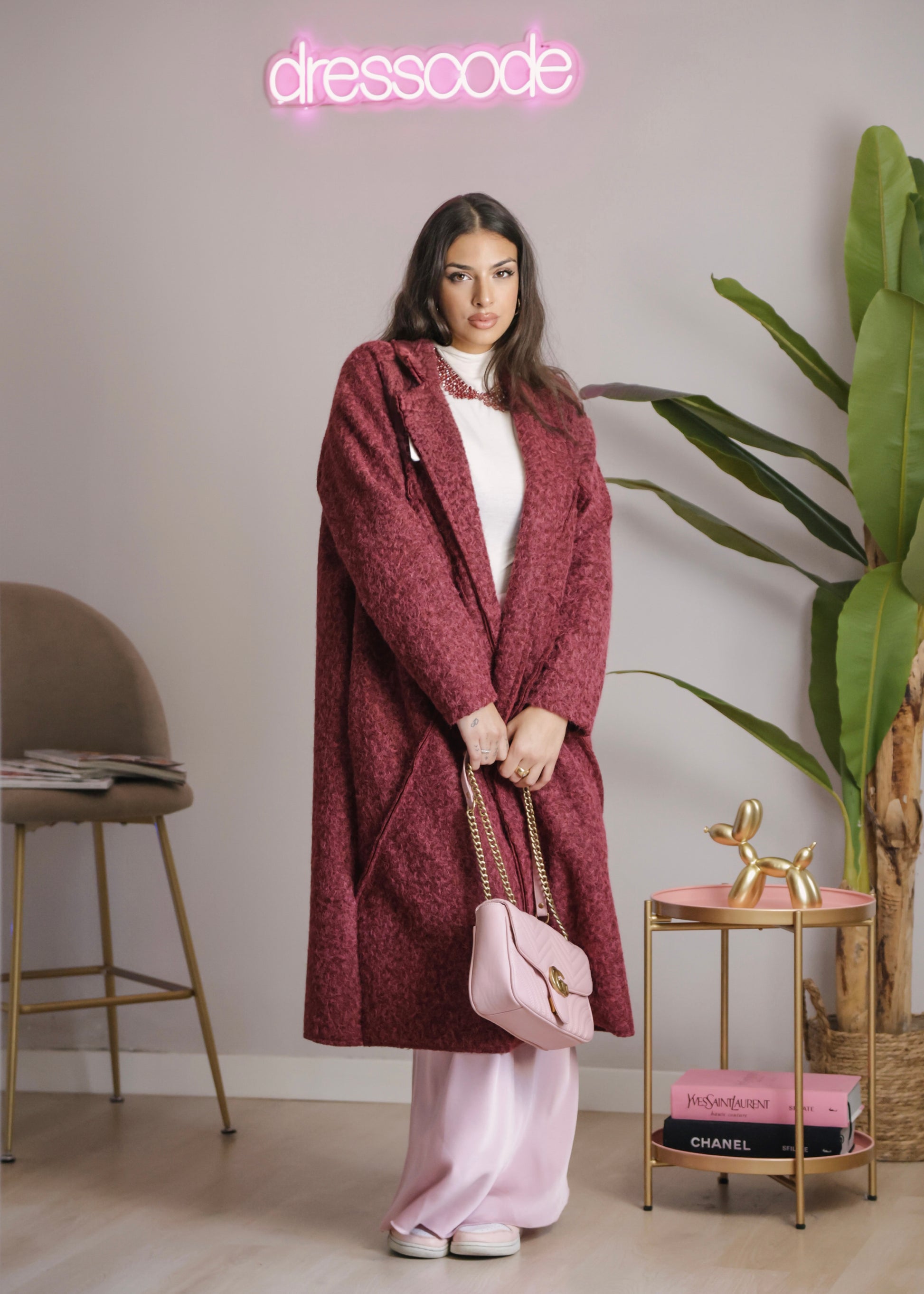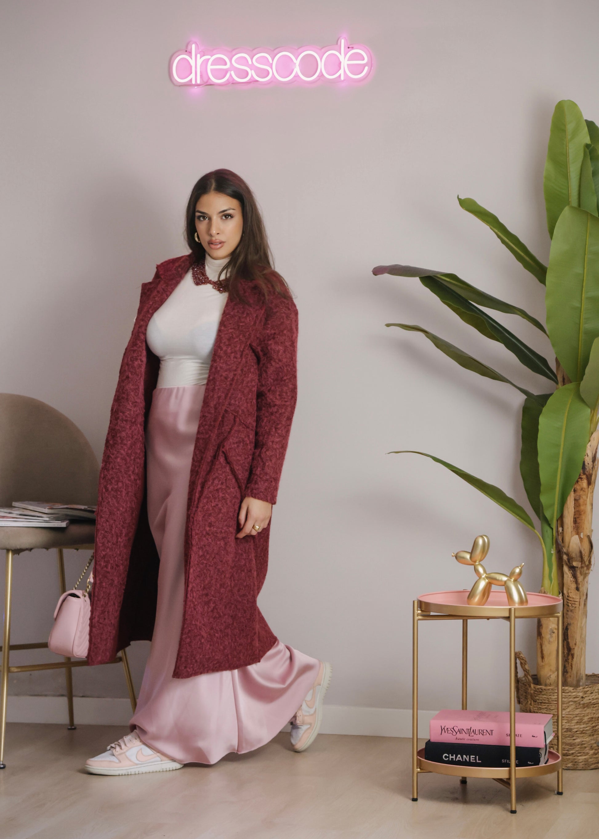 La modella è alta 1.66m, è una 40 ed indossa la taglia unica.