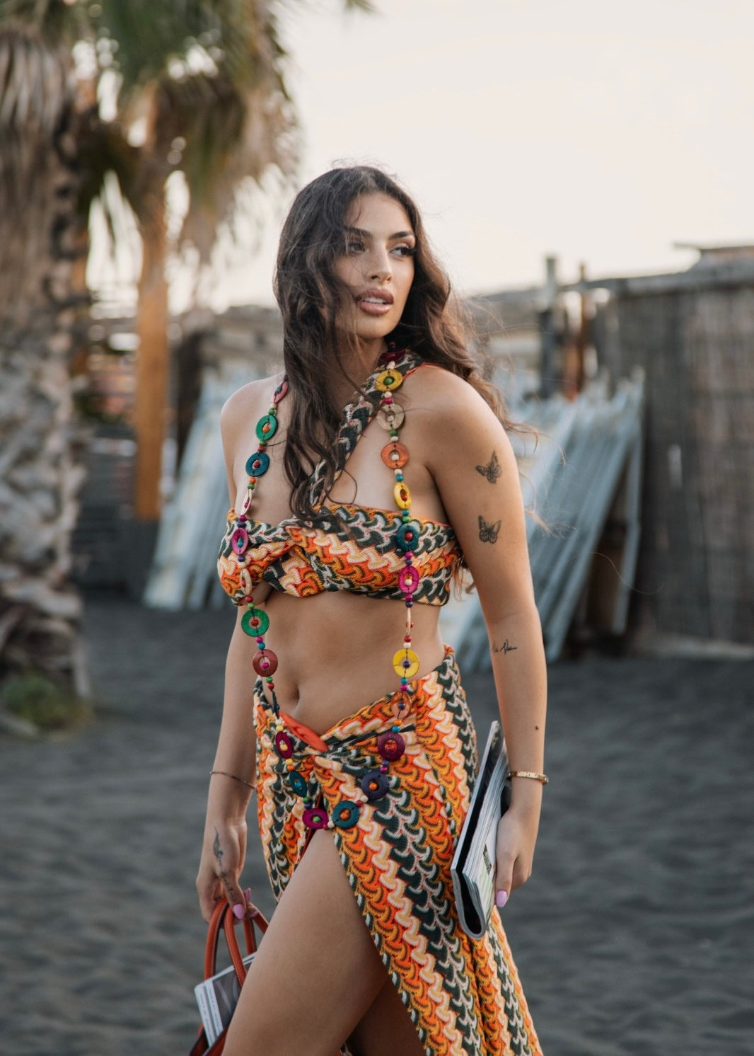 Coordinato composto da un top a fascia monospalla con cut-out al centro del seno e fantasia Missoni ricamata.