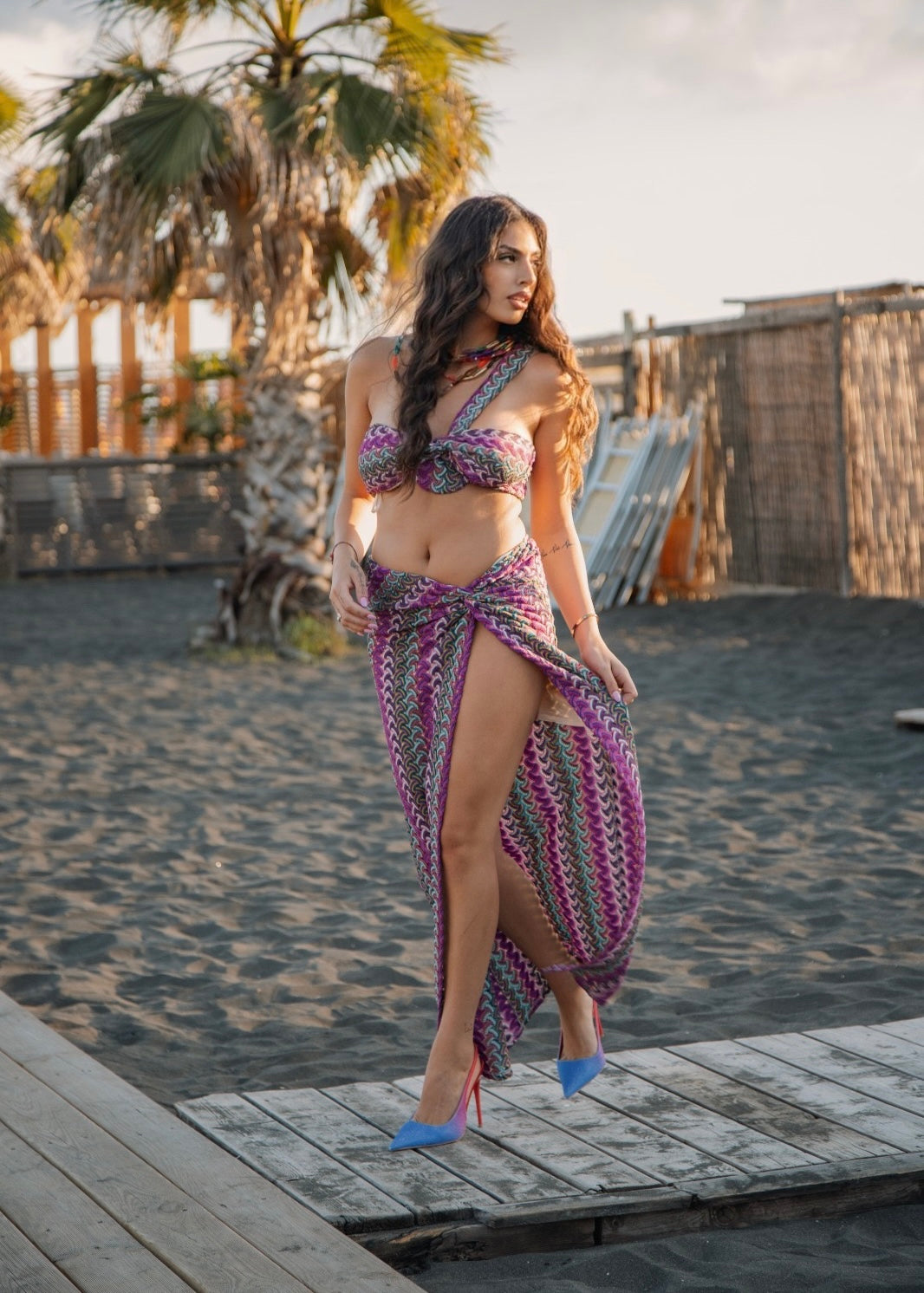 Coordinato composto da un top a fascia monospalla con cut-out al centro del seno e fantasia Missoni ricamata.