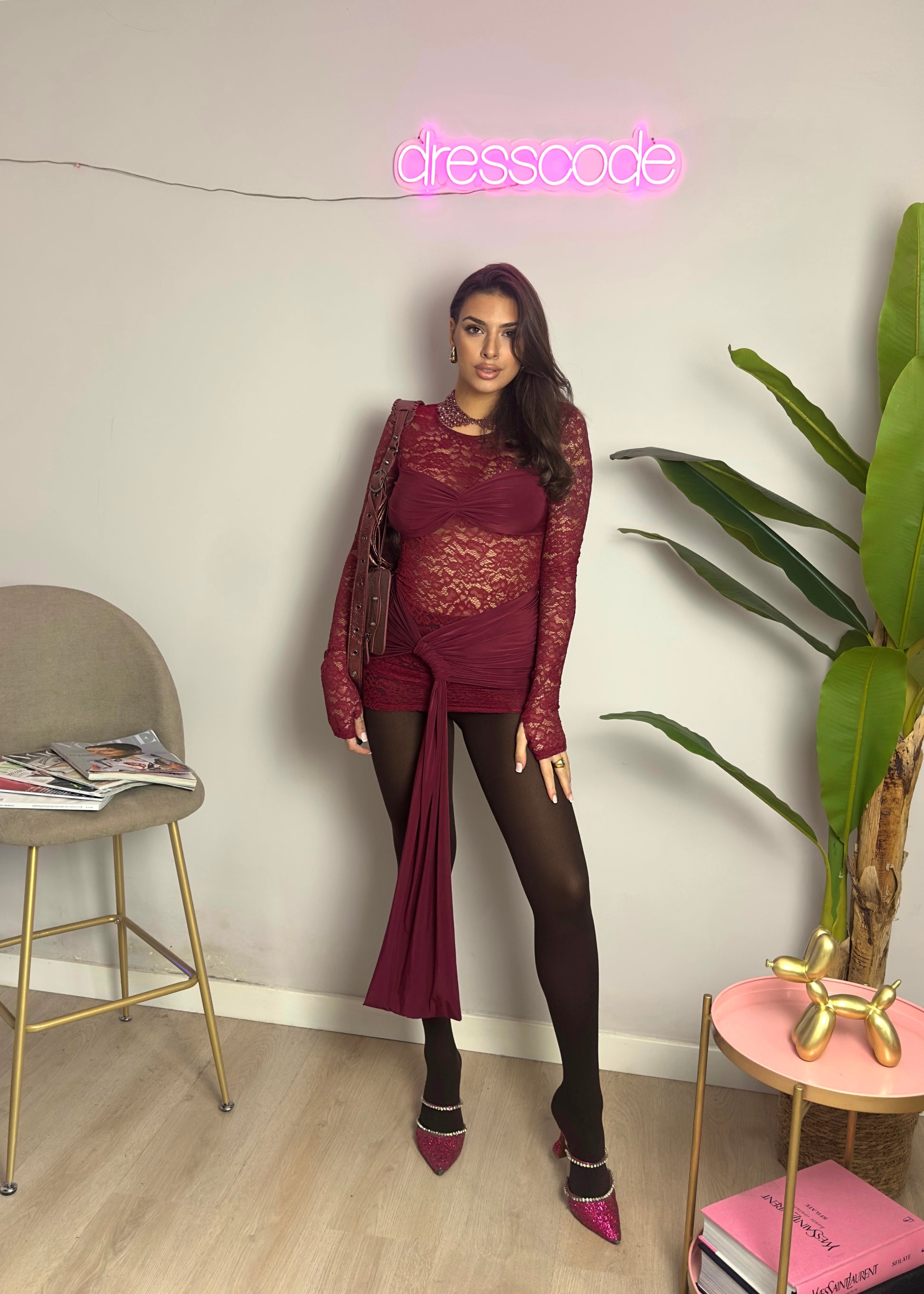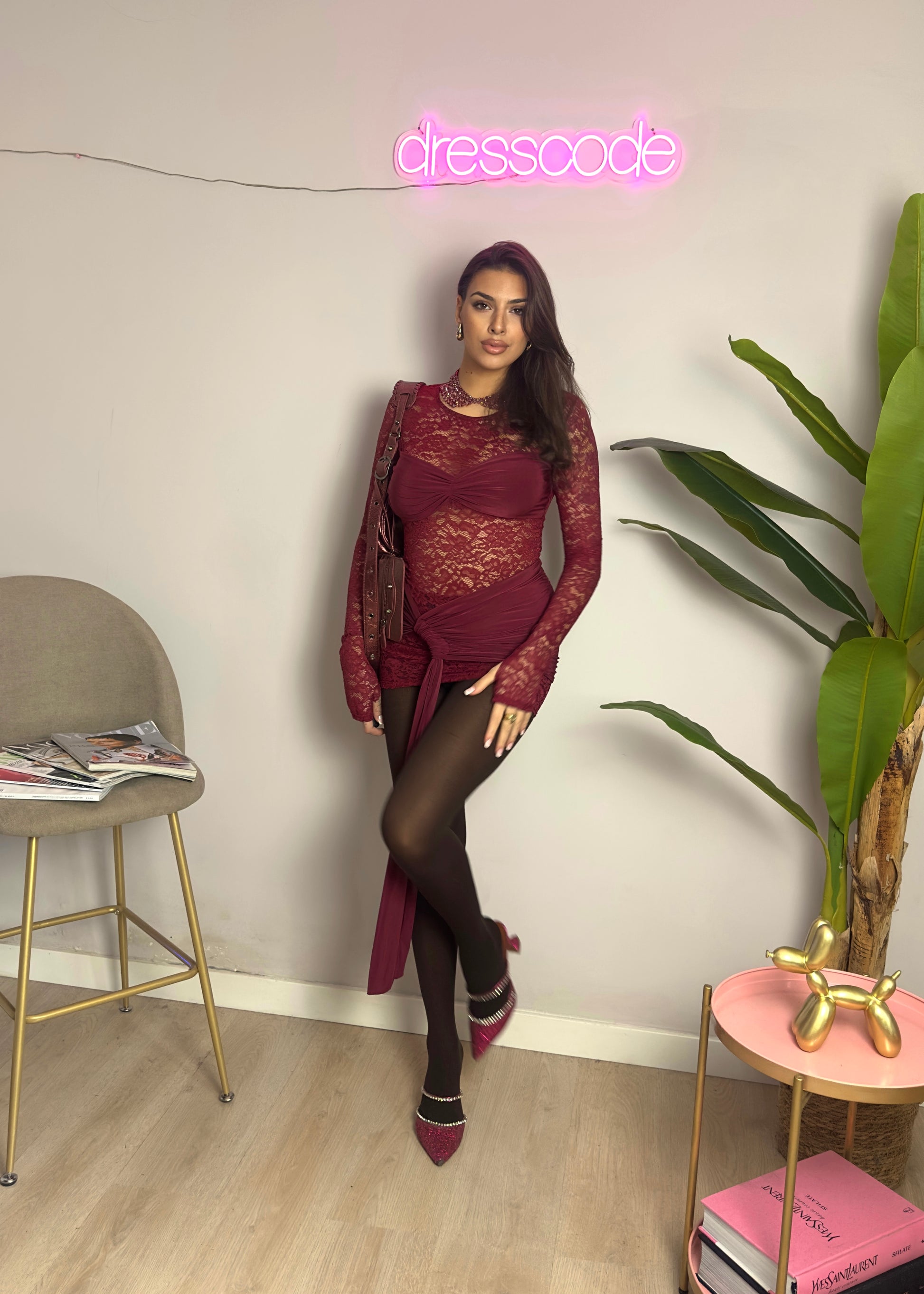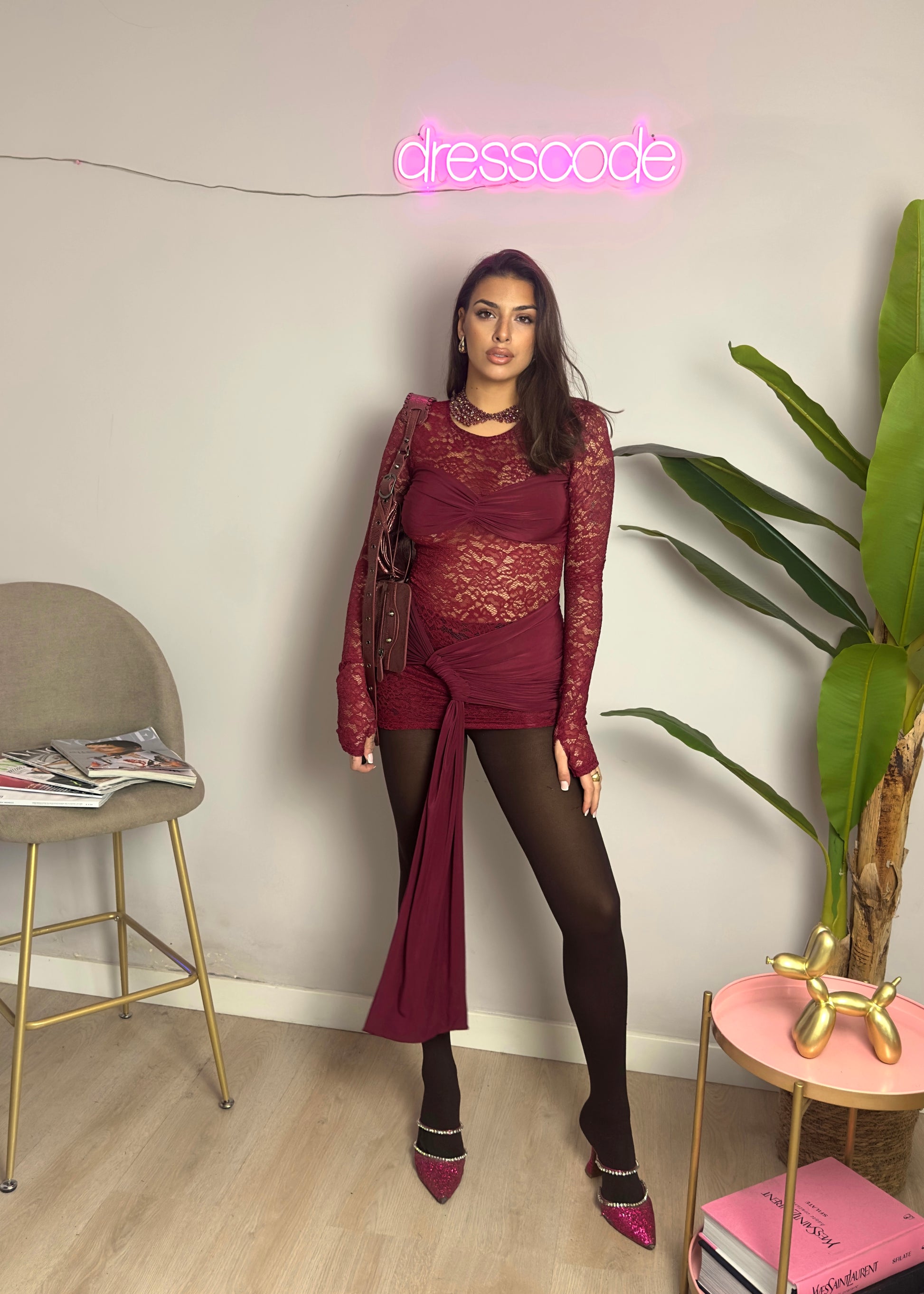 Mini abito in pizzo e lycra.