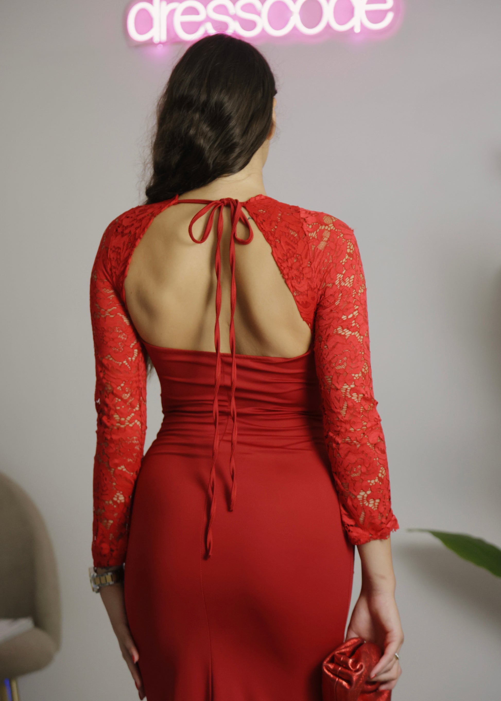 L'abito presenta un cut out sulla schiena e un piccolo spacco sul retro.