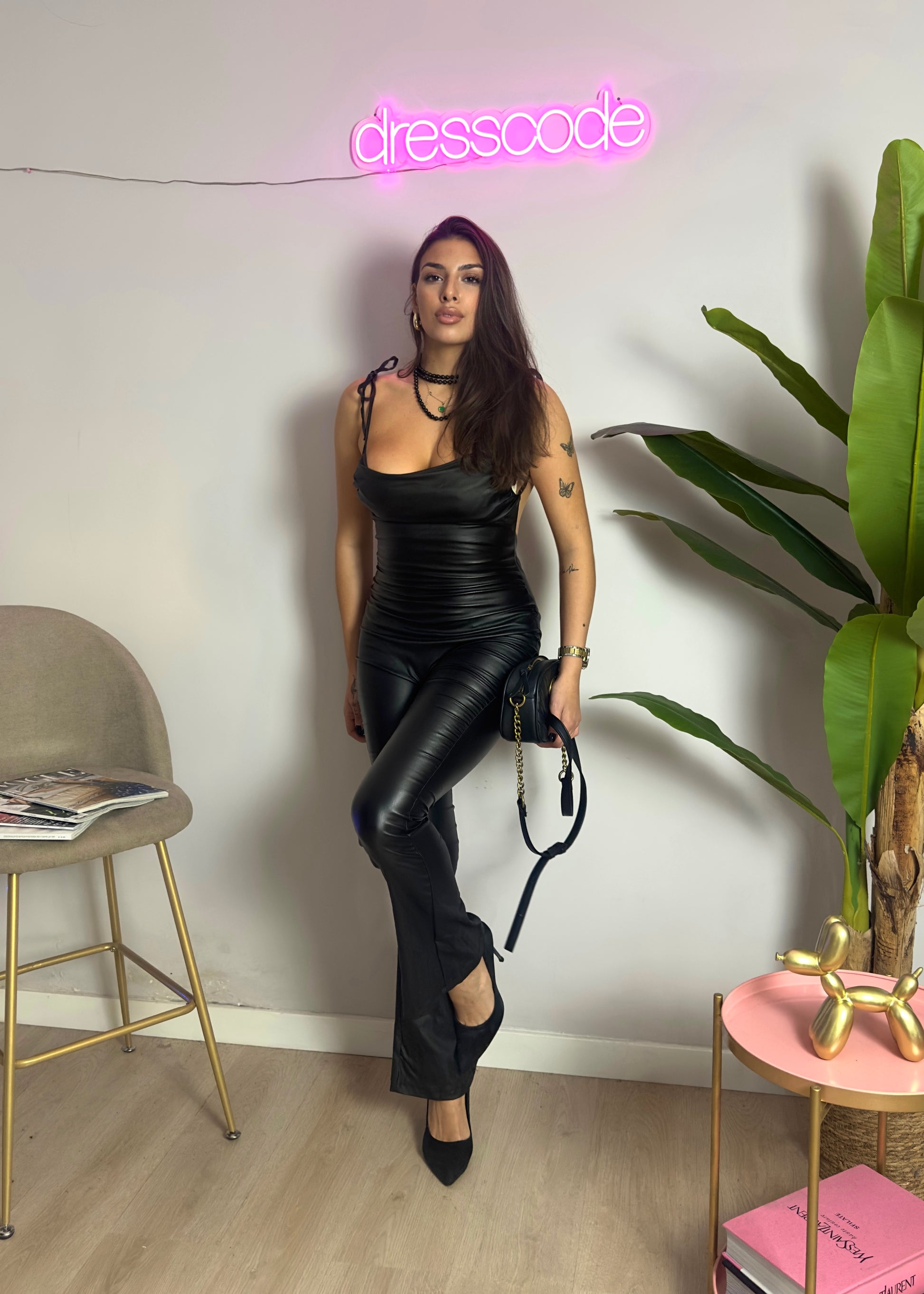 Jumpsuit in ecopelle aderente.
