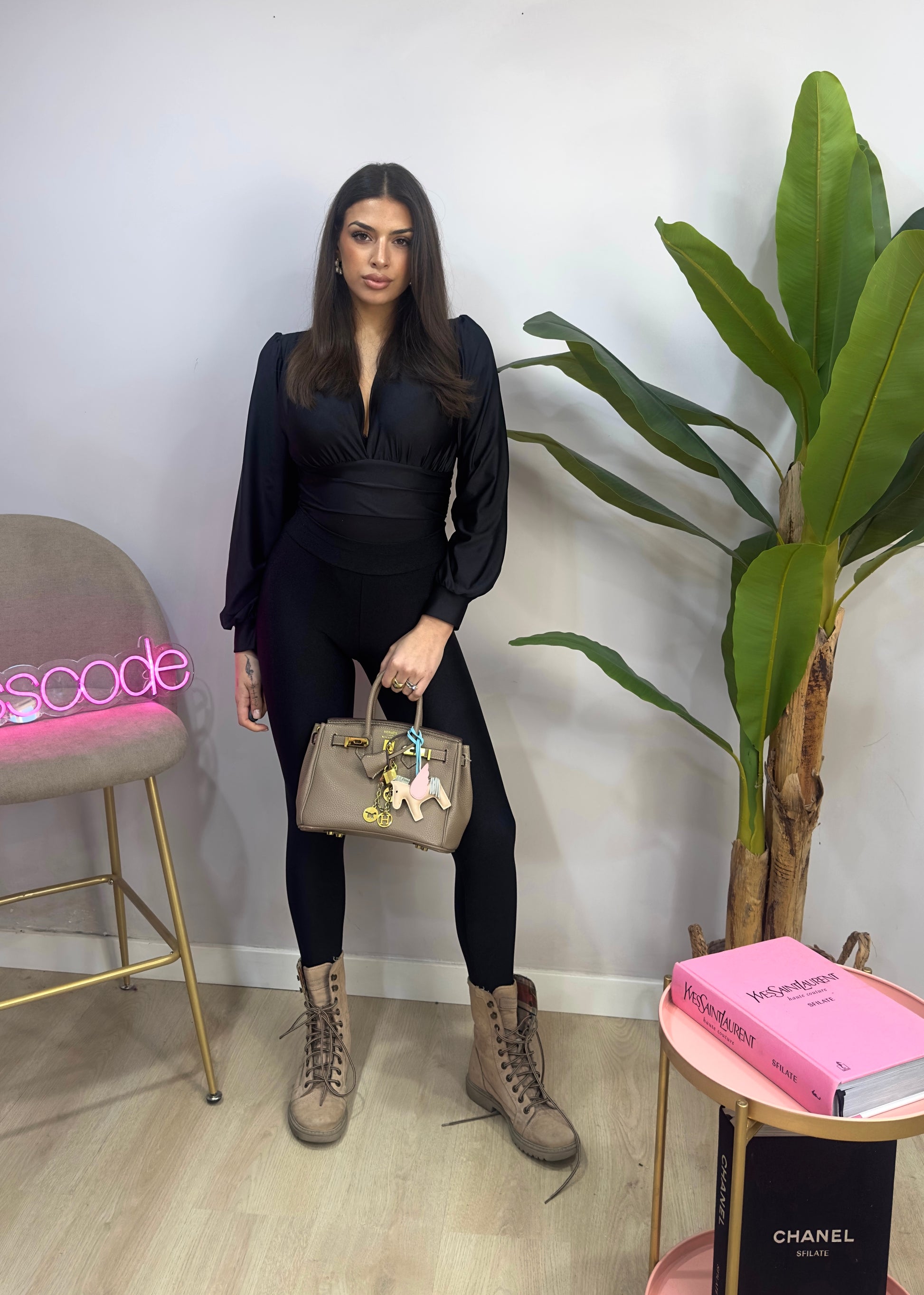 La modella è alta 1.66m, è una 40 ed indossa la taglia unica.