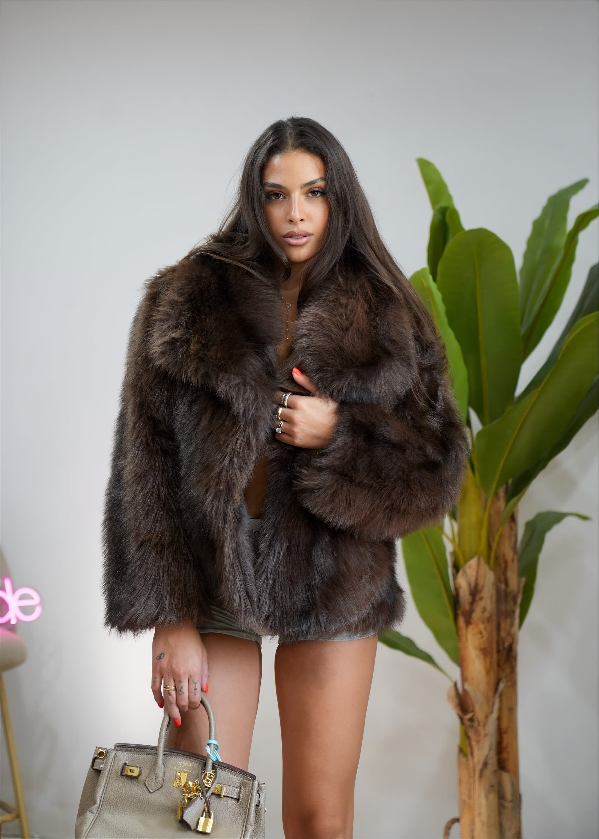 Eco-pelliccia morbida dal fit oversize con bottoni a scomparsa.