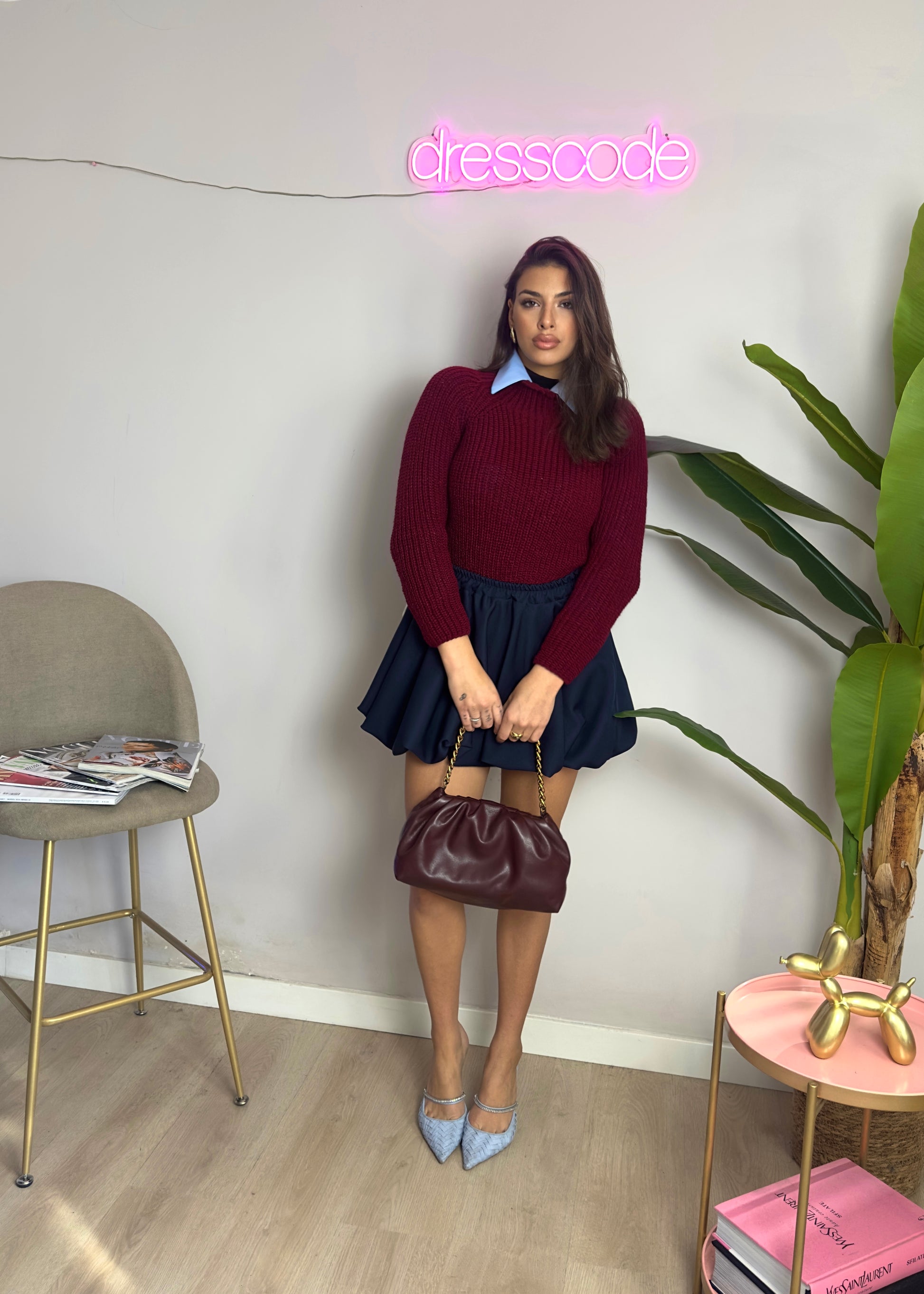 La modella è alta 1.66m, è una 40 ed indossa la taglia unica.