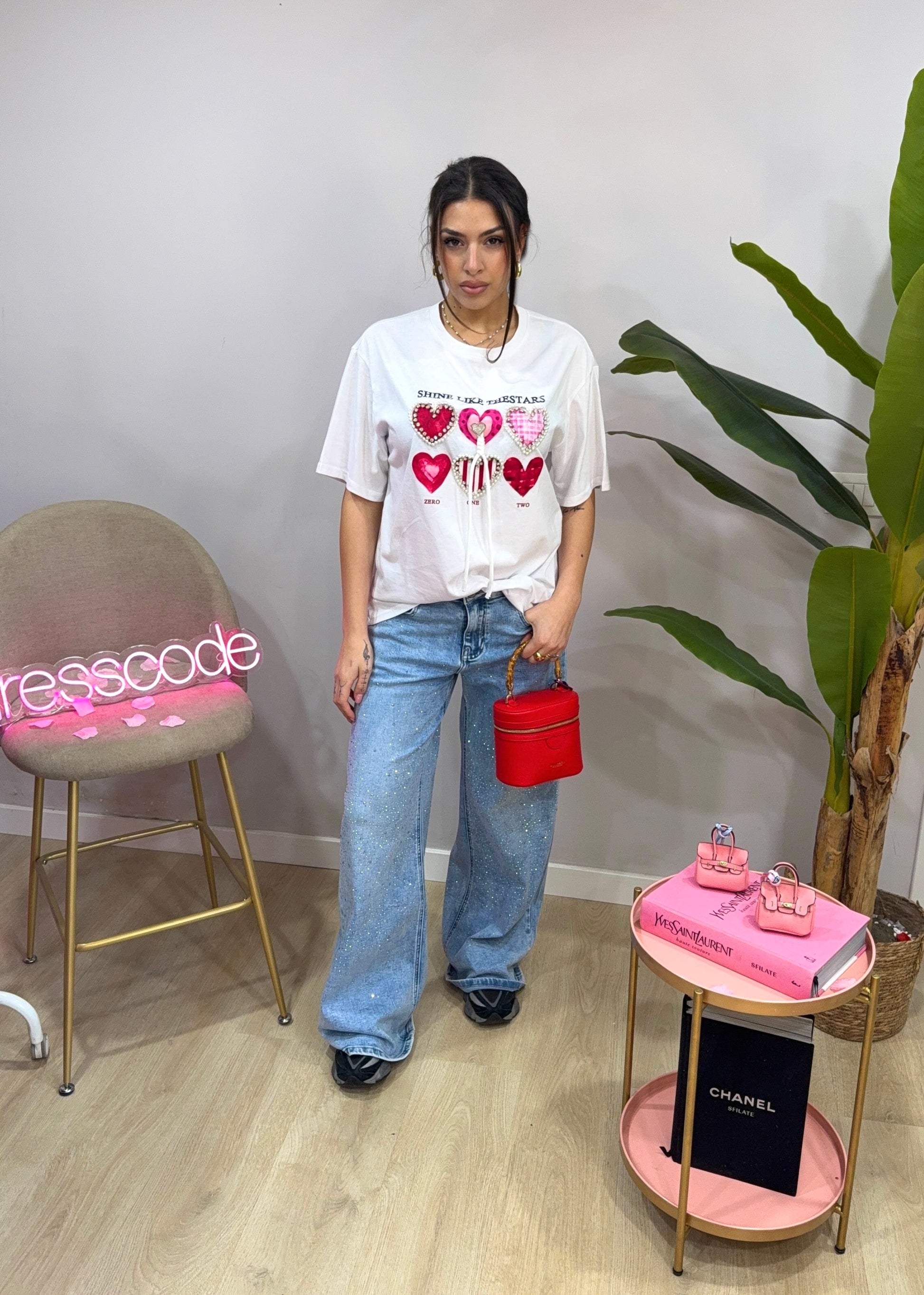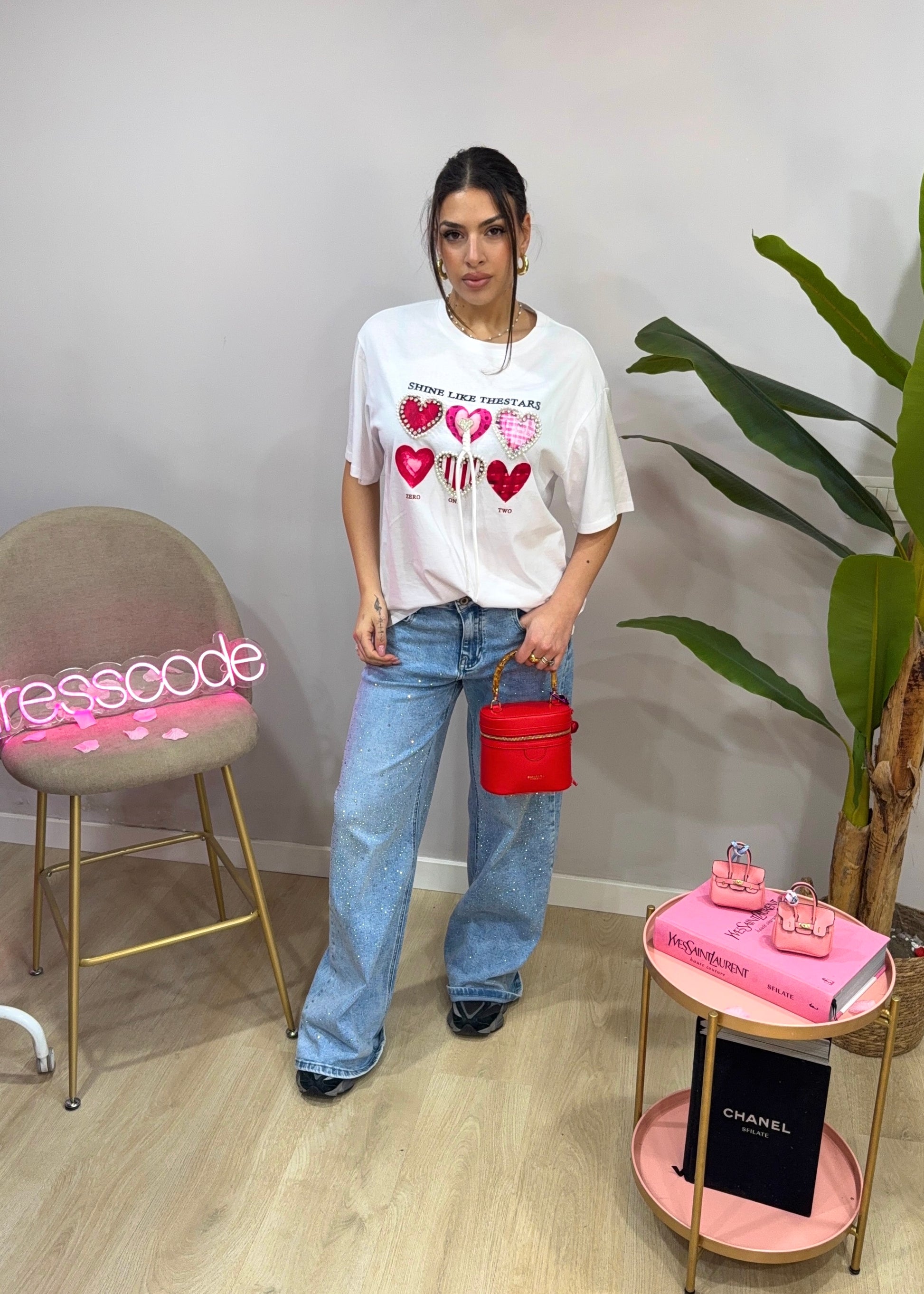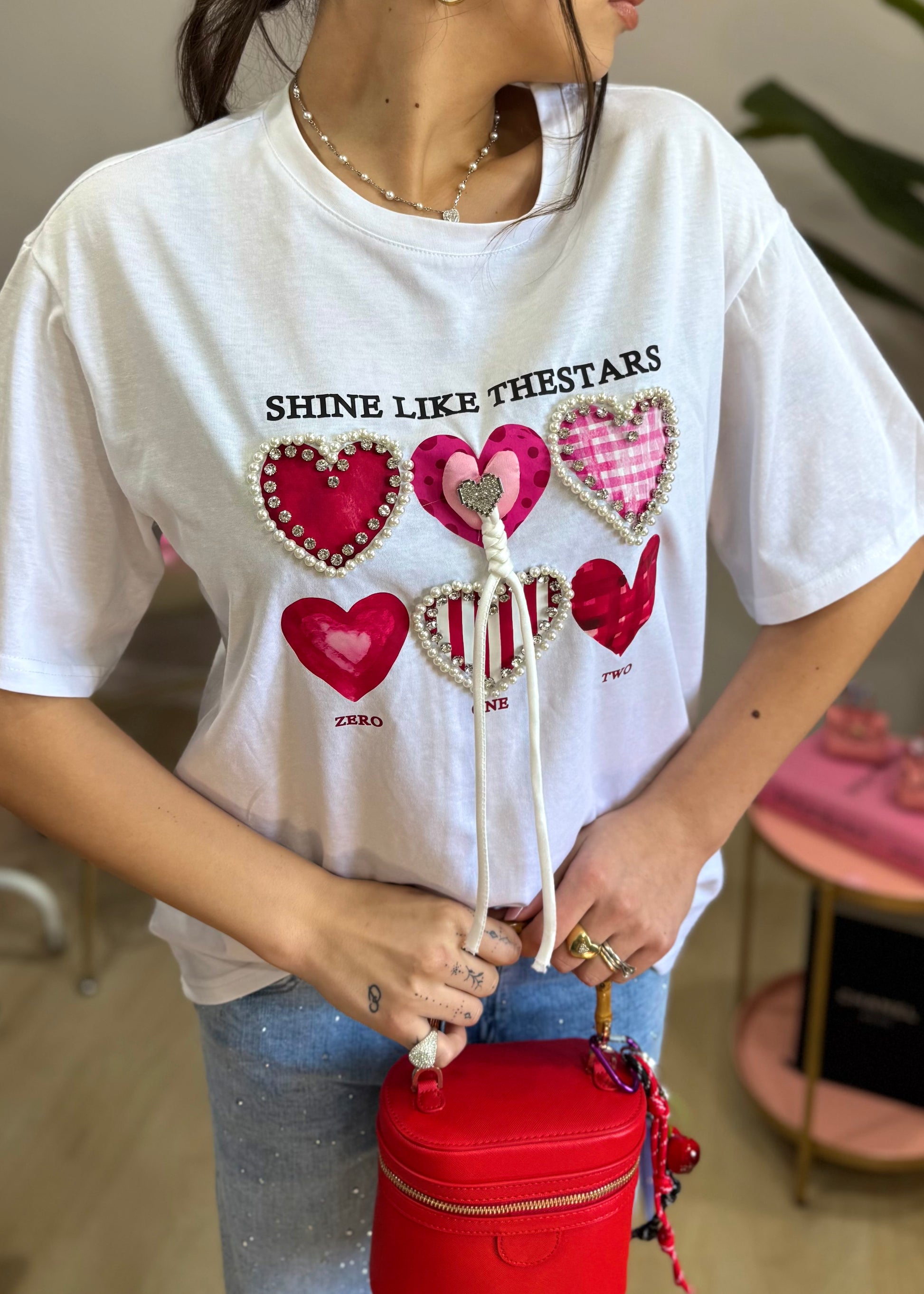 La shirt è impreziosita da sei cuori dipinti al centro.