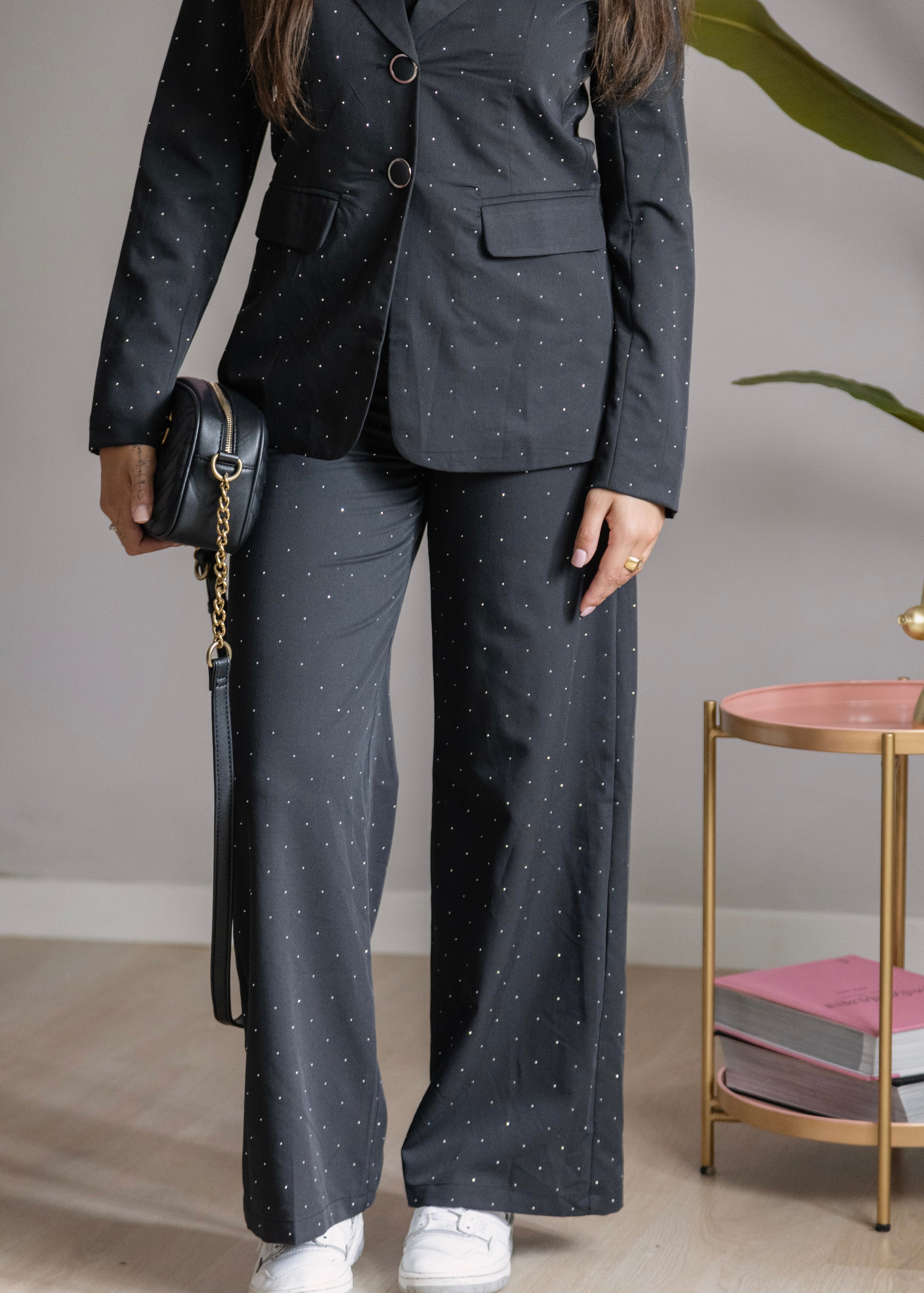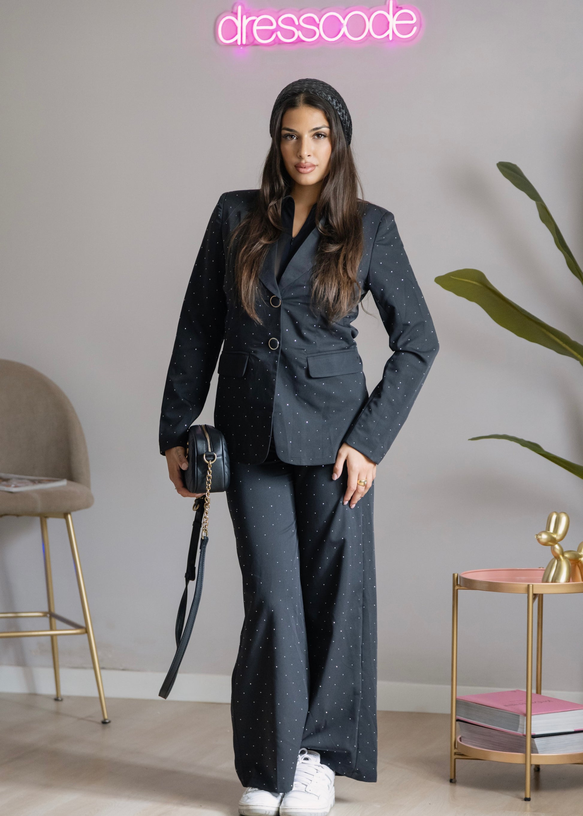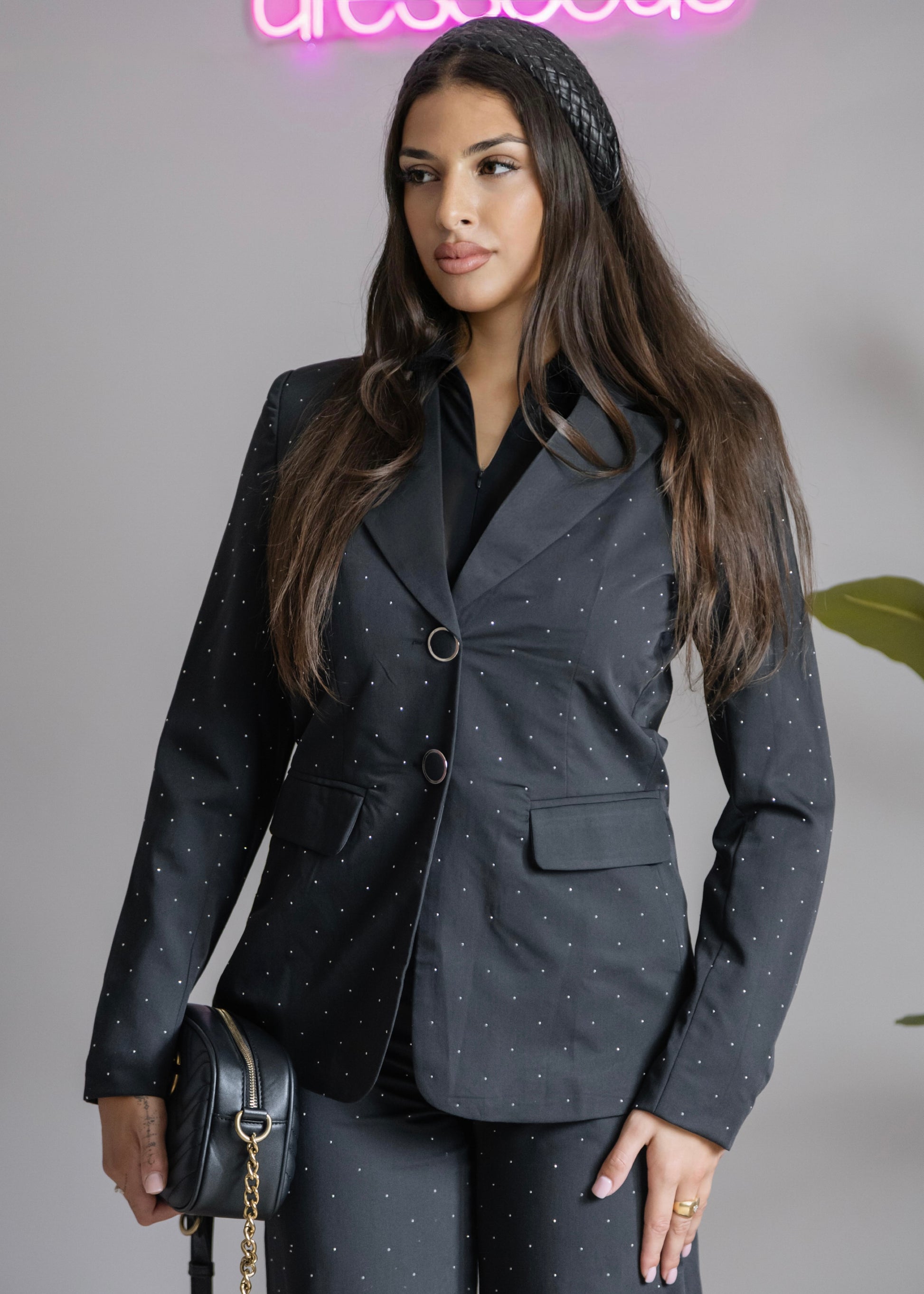 Il tailleur è composto da una giacca monopetto a due bottoni,