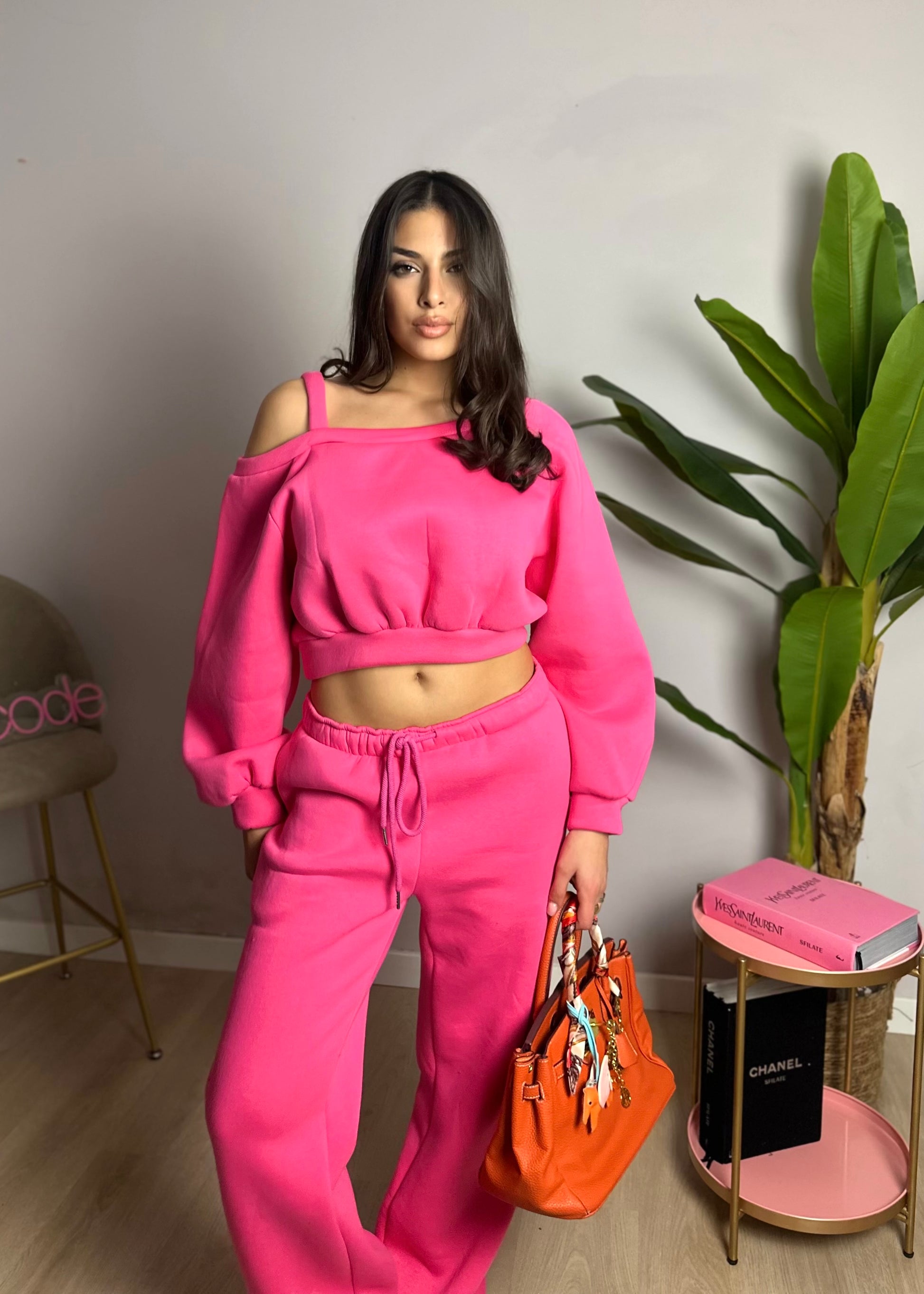 La maglia presenta una manica che scende ed una bretella tono su tono.